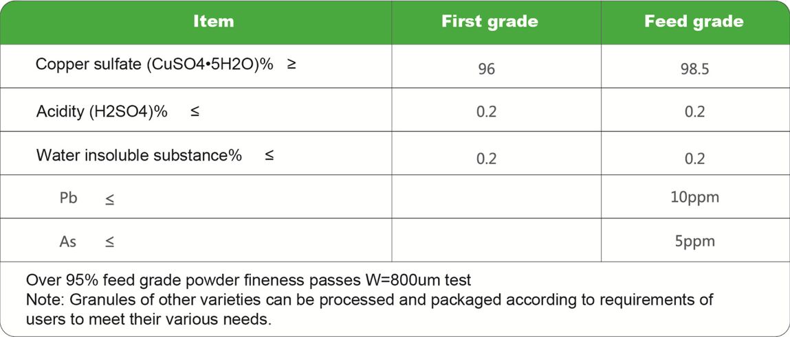 Granular copper sulfate: Bright blue appearance, uniform granularity, good liquidity, dry and not easily caking, conducive to long-term preservation.