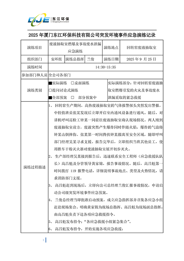 2025年廈門東江環(huán)保科技有限公司突發(fā)環(huán)境事件應急演練
